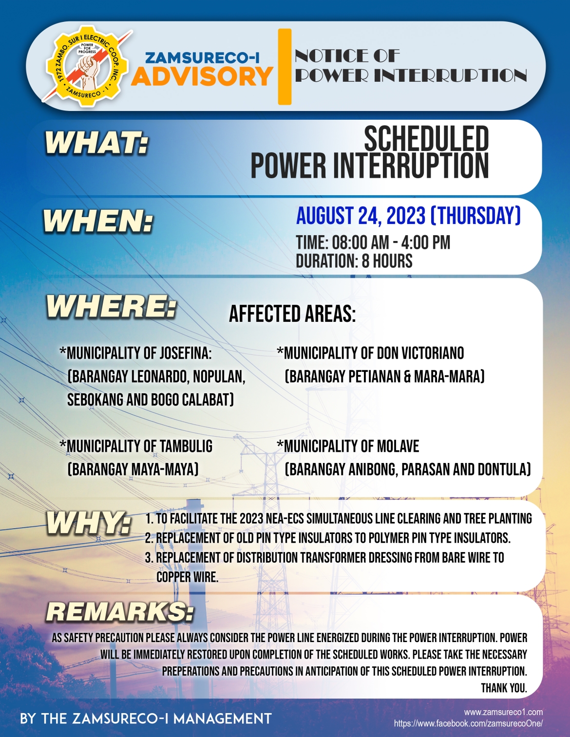 Schedule Power Interruption (AUGUST 24, 2023) between 8:00 AM - 4:00 PM